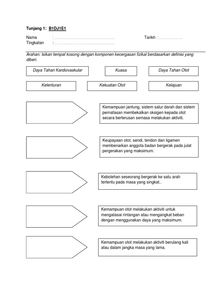 Pendidikan Jasmani Tingkatan 1 Pergerakan Berirama Worksheet